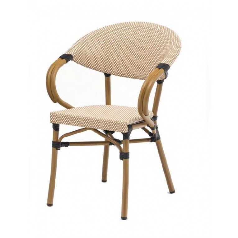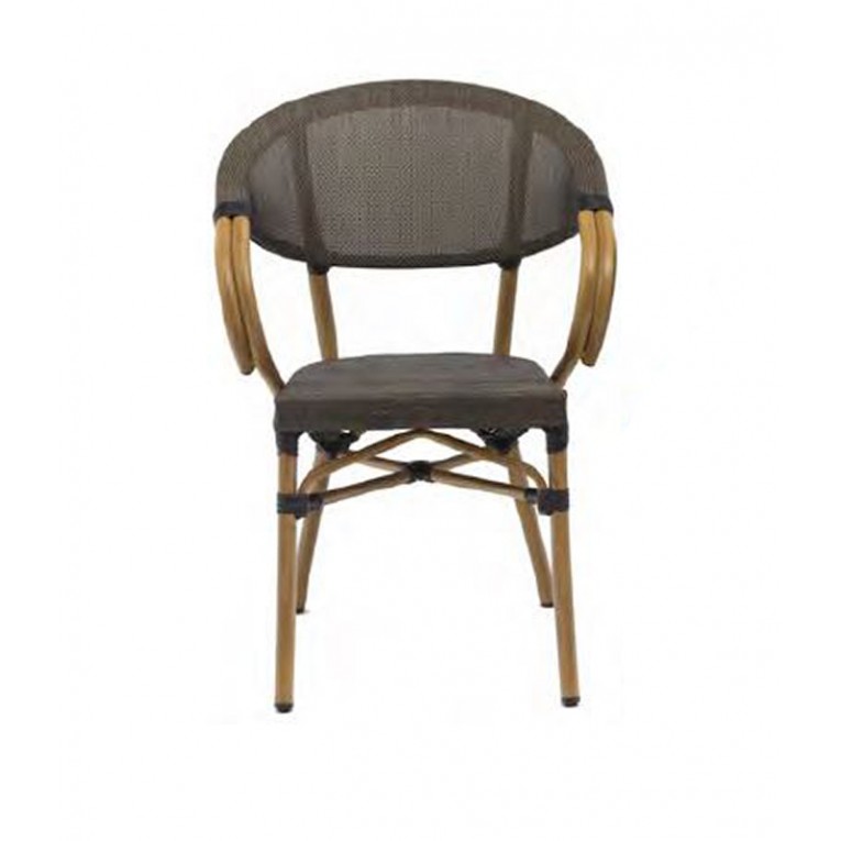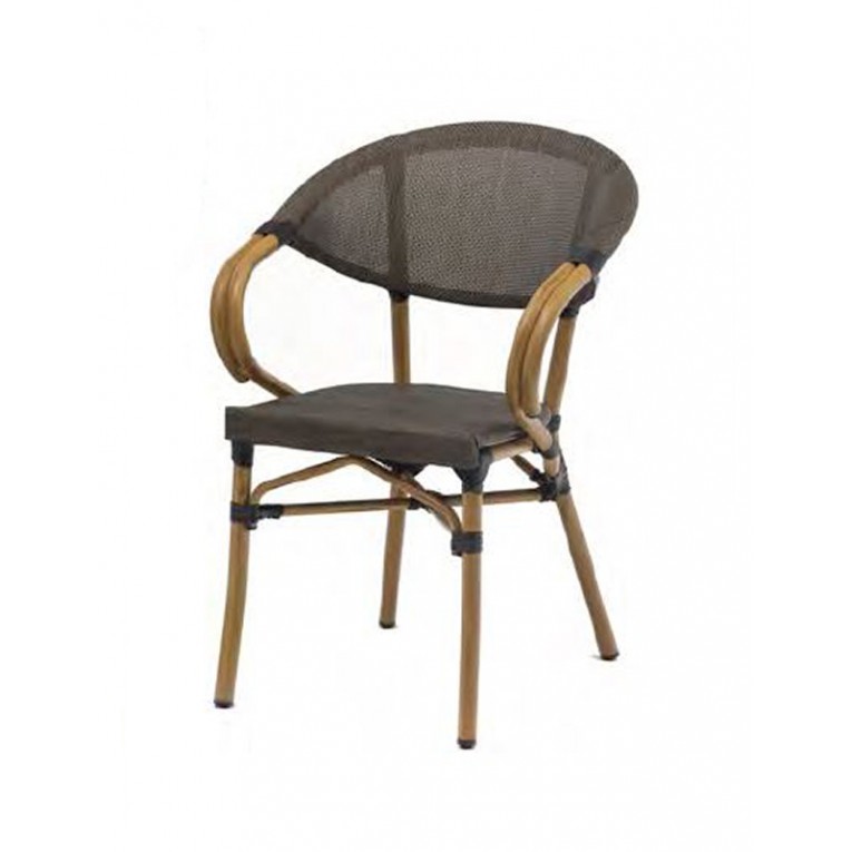 Respaldo y siento en textilene. Sillón muy versatil y comodo ademas es apilable.